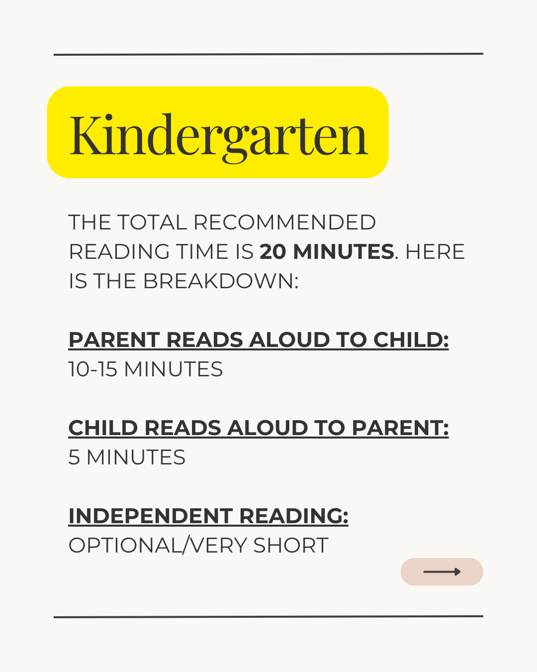 Parents read any book aloud that interests their child for most of the time, and then the child reads aloud a “just right” book for a shorter period of time.